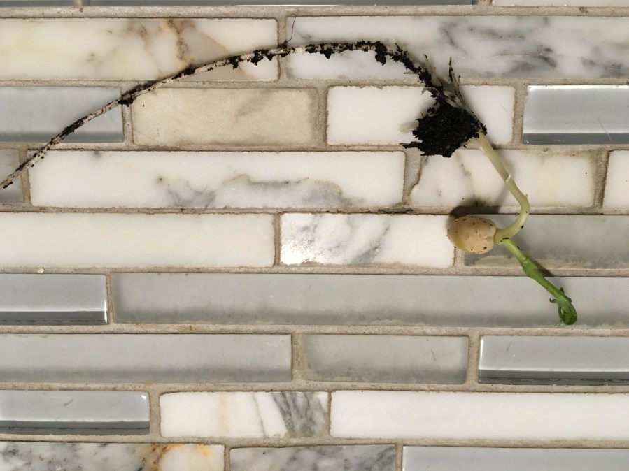 Pois, sa racine, ses cotylédons et sa pousse.