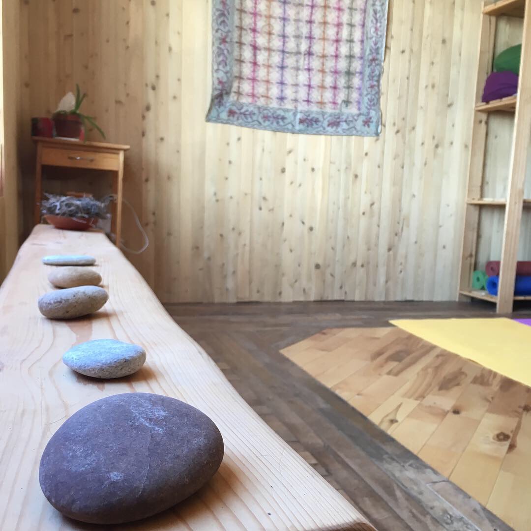 Roches de conscience prêtes à être déposées au cercle de femmes de la nouvelle lune de mai.