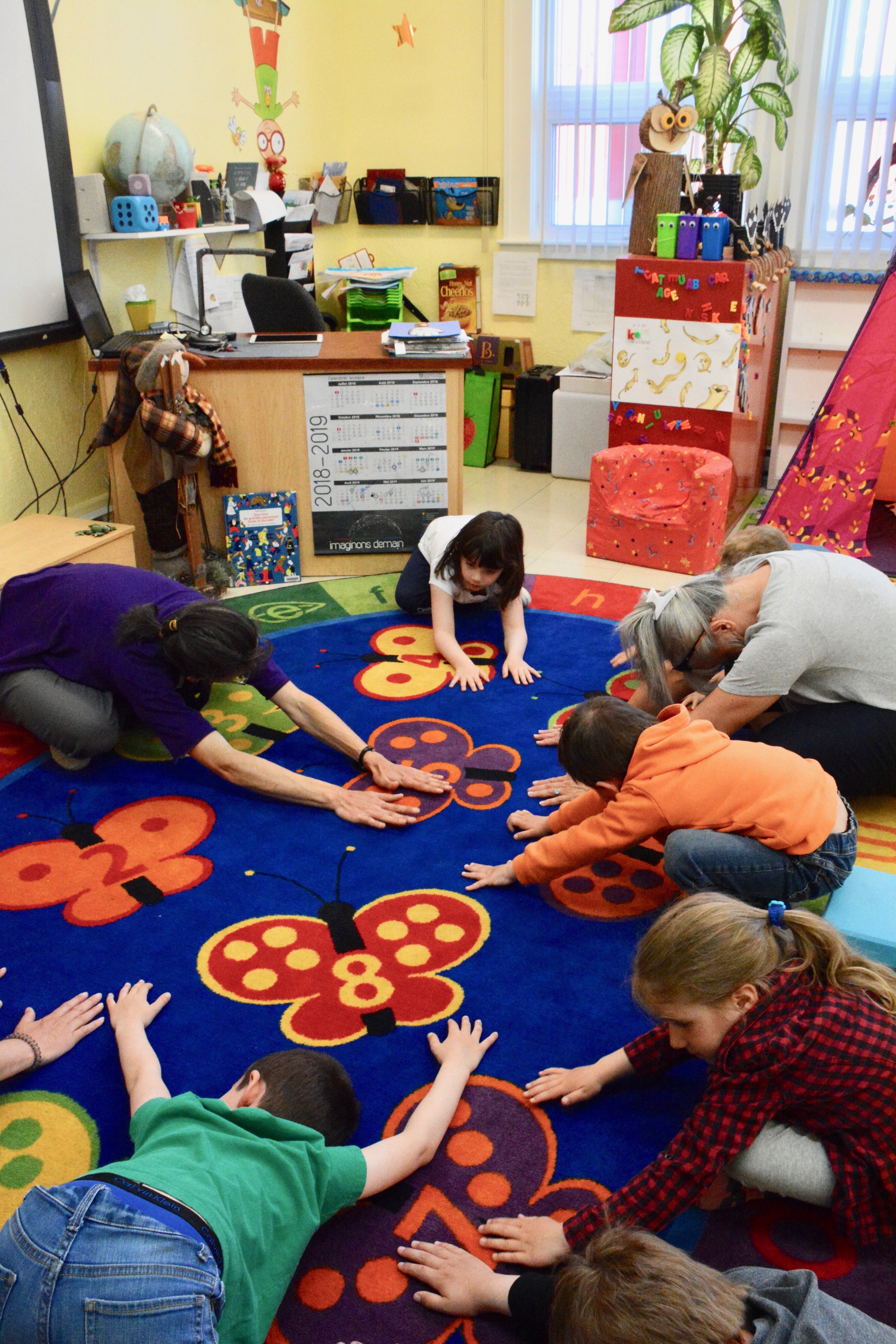 Étirements pendant la séance de méditation à l’école, en maternelle